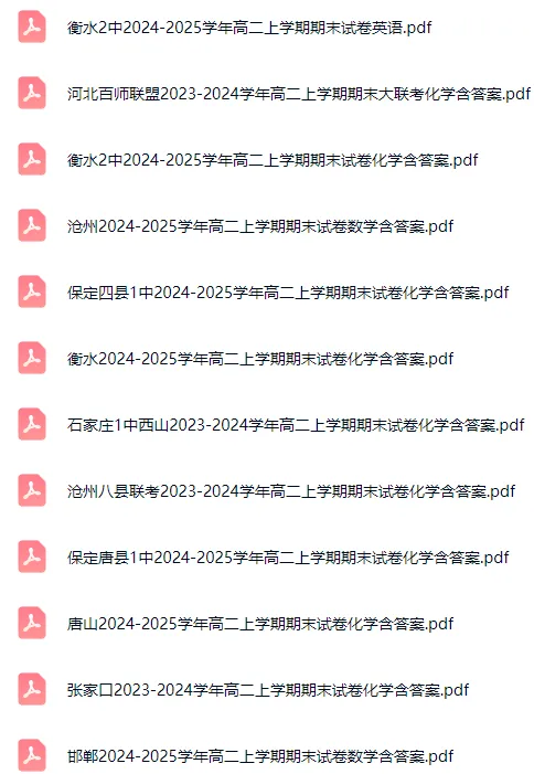 今天给同学们分享的是2中、衡中、正中、石家庄、保定、邢台等地高一、高二上学期期末全科试卷含答案