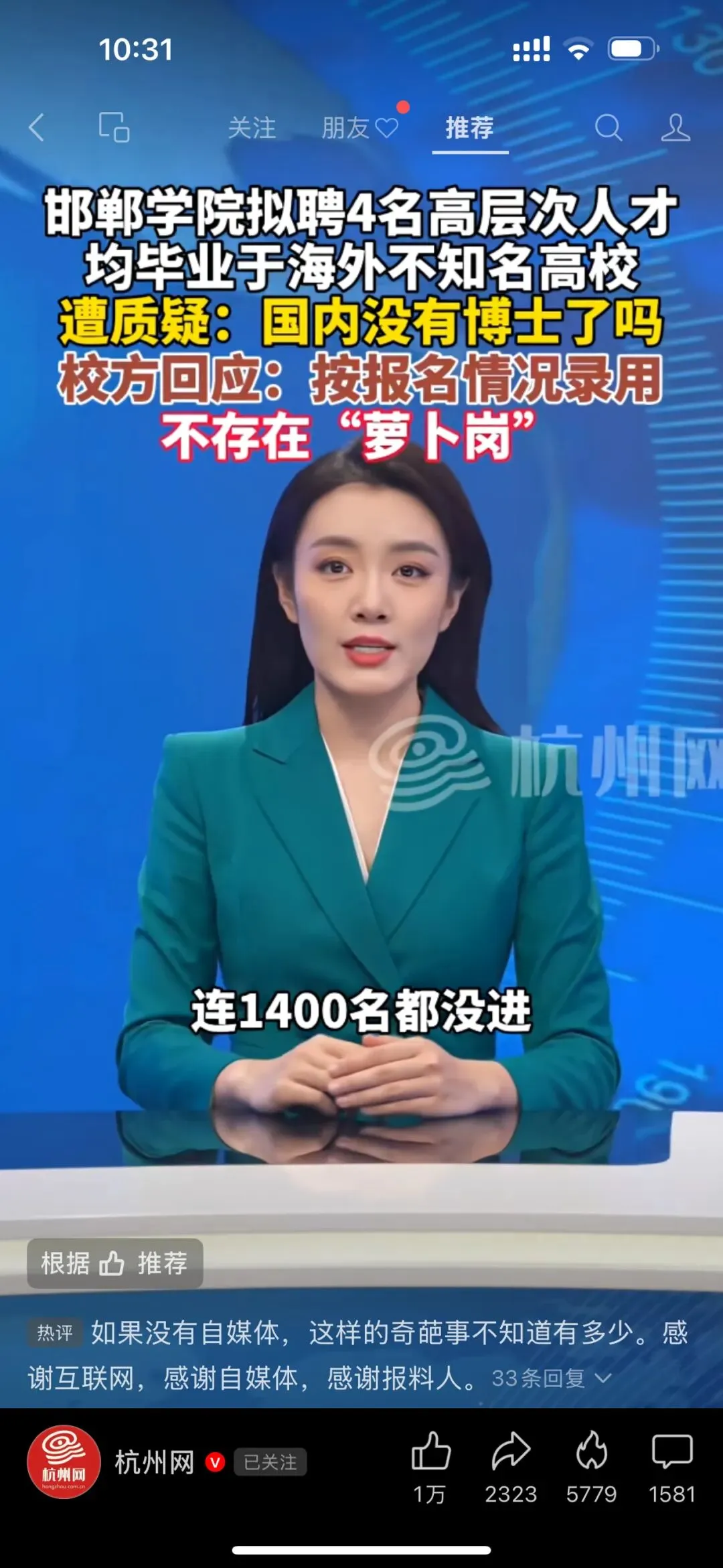 马来西亚林肯大学学院在2026年首次进入QS世界排名,位居638位,其博士学位中的教育学也是比较强的专业之一。从网上看到的情况来看,邯郸学院招聘的这四名博士生,无论是三所韩国大学还是马来西亚林肯大学学院,在亚洲或者世界地位,算不上有多强但也说得过去,都相当于我国国内的双一流水平。可为什么大家对邯郸学院的本次招聘结果依旧不满意,甚至抱有怀疑态度呢?其一,邯郸学院的招聘录取信息不透明。邯郸学院将四名拟招录人员信息发在网上进行公示,公示时间为2026年1月11日至1月20日,并公布了监督电话。但当有人拨打公布的电话咨询时,两部电话均无法打通。其他工作人员回复称学校在放假状态,这难免让人不产生怀疑。其二,邯郸学院作为河北省一所公办本科院校,为提升学校的办学水平,招聘海归博士也无可厚非。关键是招聘过程是否秉承公开、公正、透明的原则,被录用的这四位海归博士相对于其他六位落选的博士,是否在学术水平、工作能力、综合素质等方面一定是最优秀的,在招聘过程中到底有没有夹杂“私货”,有没有“萝卜坑”?这是大家关注的重点。其三,邯郸学院本次招聘之所以引起广泛争议,说到底还是社会公信力的缺失,老百姓已经见惯了一些职能部门,在涉及到招工、招编、招聘、招标等工作方面的“潜规则”,对一些单位存在的“萝卜坑”深恶痛绝。一旦人们发现一些不合常理的现象出现,人们就会积极“围观”,群起而攻之。其四,近些年,国内就业压力巨大,许多普通家庭家的孩子毕业就失业现象十分普遍,特别是大量在国内大学毕业的大学生尤其严重。而一些用人单位在招聘过程中,习惯于带着“有色眼镜”,瞧不上国内大学毕业生,对那些“海归”毕业生格外青睐。因此,一些家庭条件好、有一定身份地位的家庭,花钱把孩子送到国外读书,过几年摇身一变,戴着“海归”头衔回国就业,由此也催生了国外一些“野鸡”大学产生,交钱就能上学。本次邯郸学院一次性招录了四位“海归”,而国内的博士集体“躺枪”,难免触动了大家的神经。我们姑且相信邯郸学院本次招聘是真的,不存在“萝卜招聘”问题。问题是邯郸学院不能避重就轻、躲躲闪闪,不能用冠冕堂皇的理由搪塞大家的质疑,那样只会越描越黑。