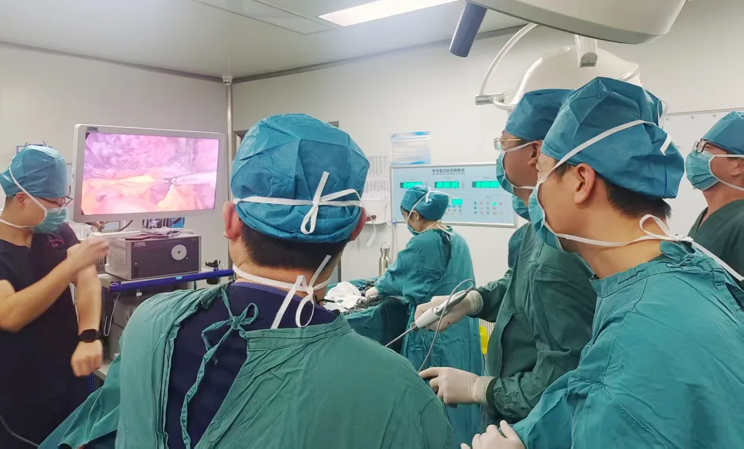 胡基刚主任说,该患者系食管恶性肿瘤,镜面右位心,因患者肺功能较差,故采用充气式纵隔镜联合腹腔镜食管癌根治术,此术式优点是不经胸腔操作,对肺功能影响小,恢复快,难点在于患者镜面右位心,所有脏器完全反转,解剖关系辨认略有困难,在姜涛主任的指导下顺利完成手术,填补了市内空白,属邯郸首例!