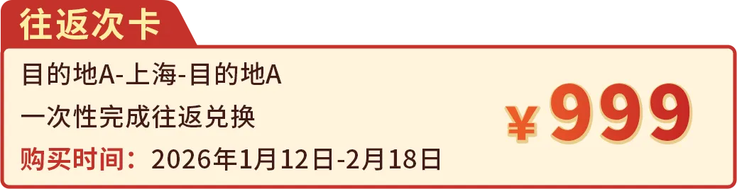邯郸机场联合东航【999元】上海往返新春团圆卡-申情版上线,春节可用,未兑可退