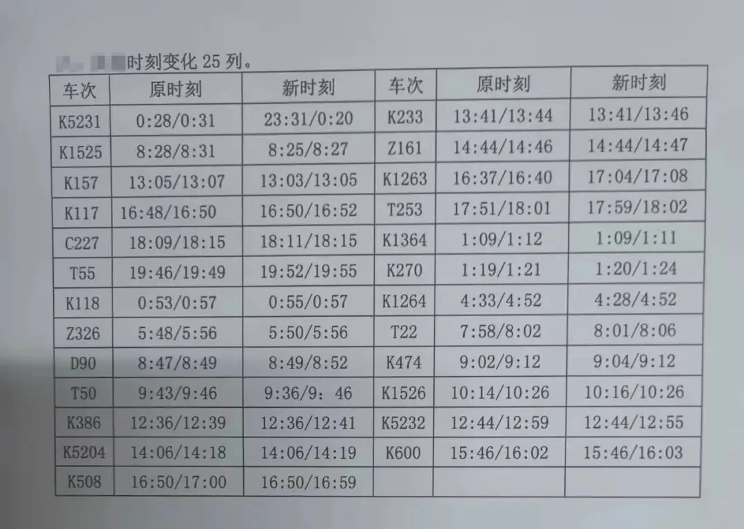 邢台火车站最新列车时刻表及此次调图部分列车到开时刻变化情况