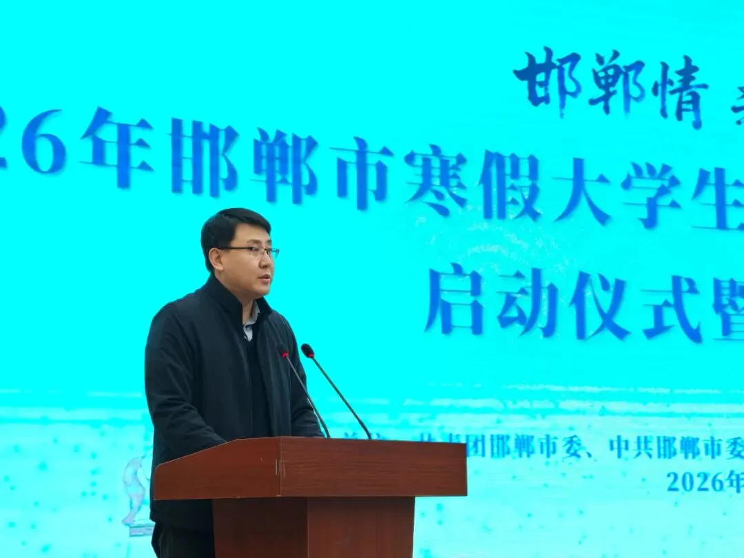 1月23日下午,2026年邯郸市寒假大学生“返家乡”社会实践活动启动仪式暨岗前培训在市青少年活动中心圆满落幕。活动由团市委、市委组织部、市人社局联合举办,团市委书记徐帼一、团市委副书记张学宝、市投促局四级调研员张峰、市委组织部人才工作科一级主任科员郭志宏、市人才交流开发中心高级人才工作科科长李涛及接收“返家乡”大学生的市直单位相关负责同志、各团县(市、区)委负责同志、“返家乡”大学生代表、“青年实干家”代表和优秀青年代表、授课专家老师等,共计170余人参加。