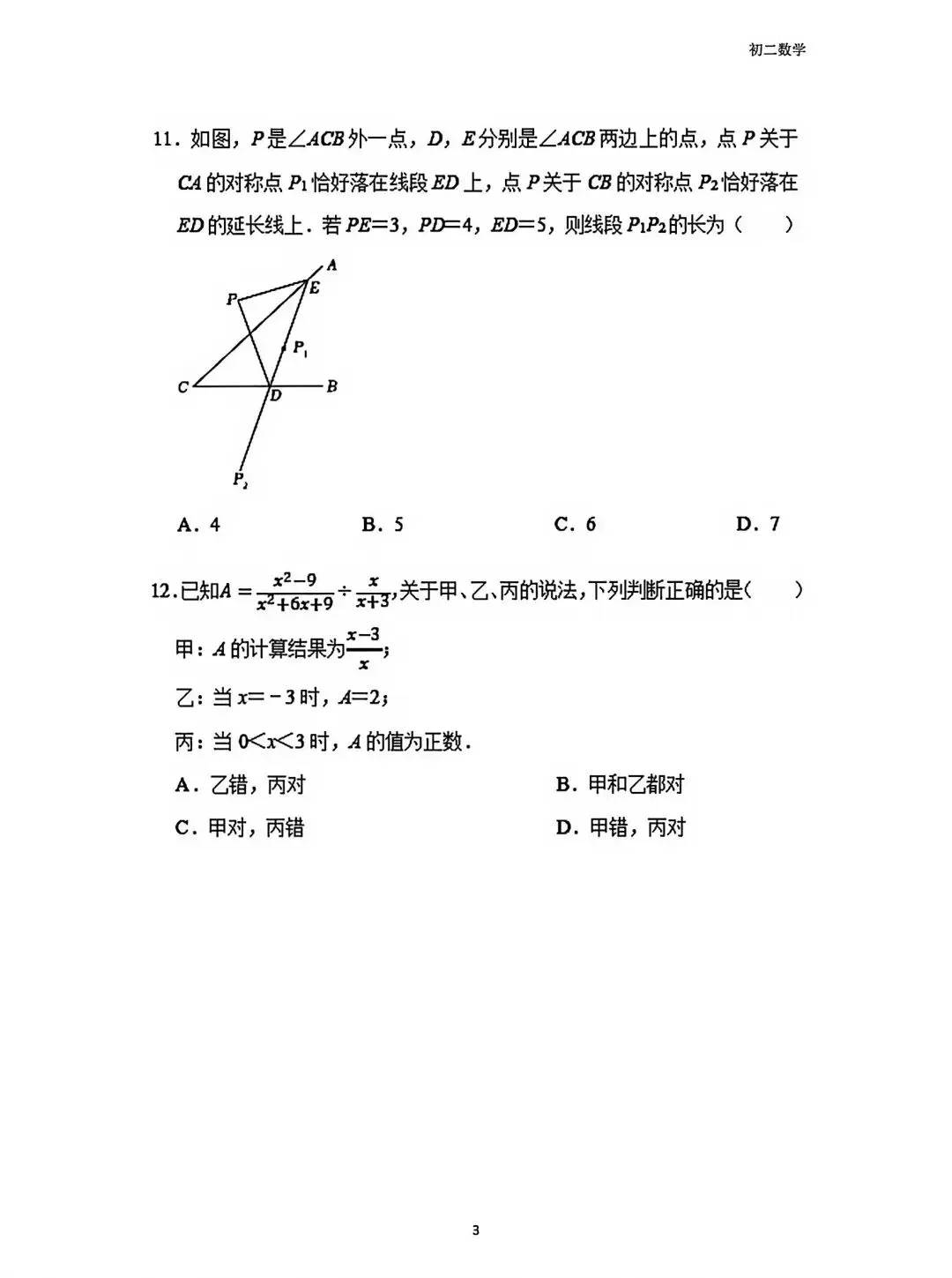 >邯郸育华中学初二上册数学期末试卷