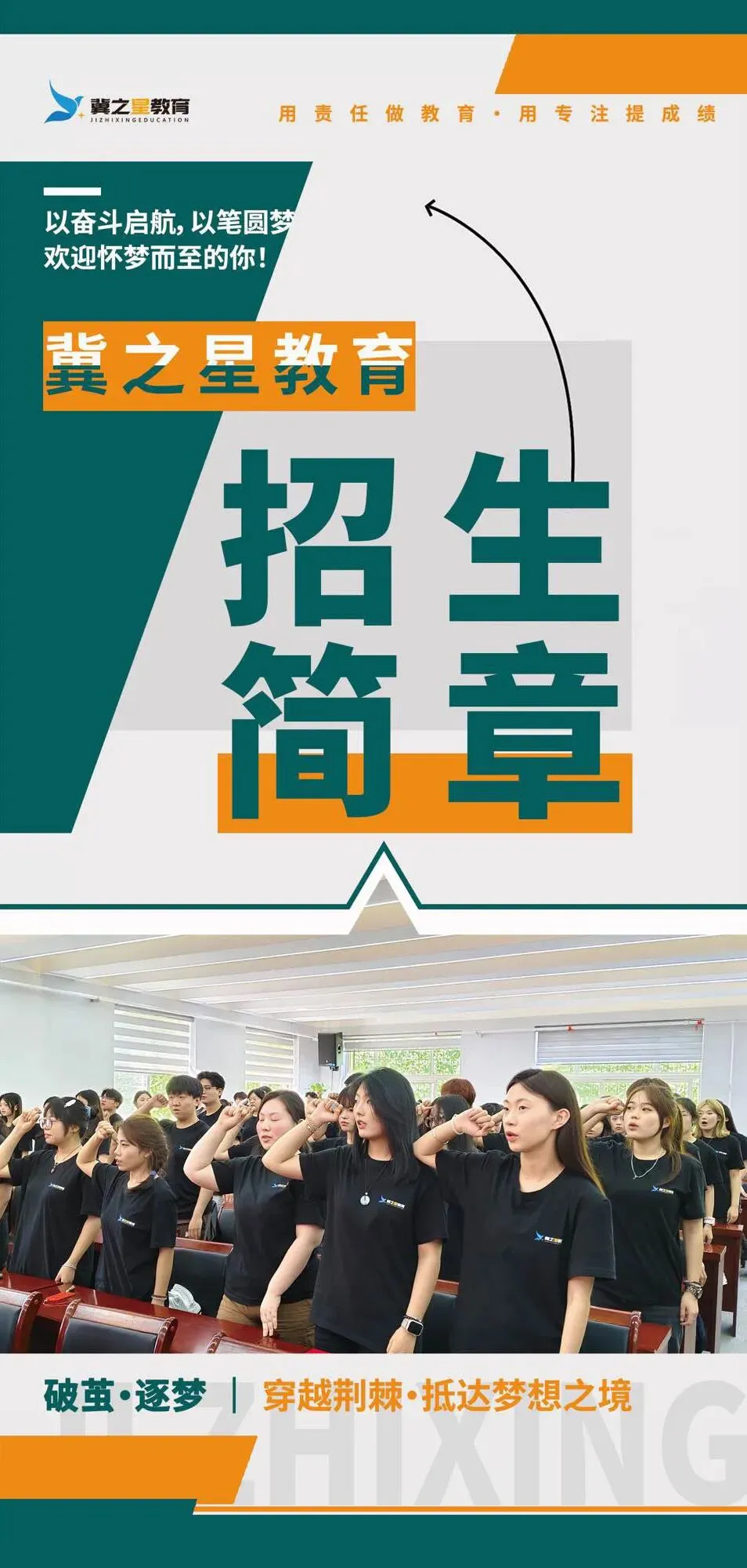冀之星教育是由从事艺考生文化课高考冲刺办学、教学、管理十余年经验的精英团队创办,专注于艺考生文化课高考冲刺。学校占地25亩,提供吃住学一体化服务,是艺考生文化课培训学校中“全封闭教练式陪伴”模式的践行者。学校秉持“用责任做教育,用专注提成绩”的办学宗旨,以“追求完美,创造卓越”为校训,采用“四位一体”教学和管理模式,精品小班授课一对一志愿填报指导,为每一位艺考之星提供专业、全面、系统的升学方案。