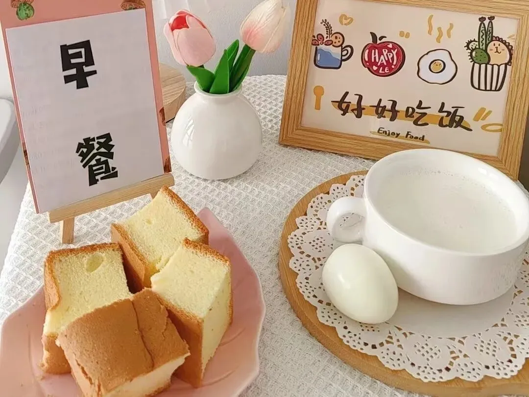 时蔬挂面汤、卤鸡蛋、奶香小馒头