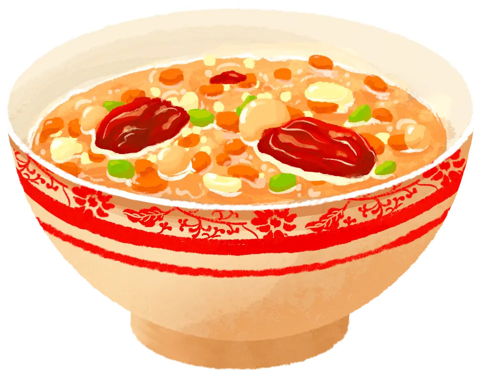 五香彩丁花卷、营养鲜蔬疙瘩汤