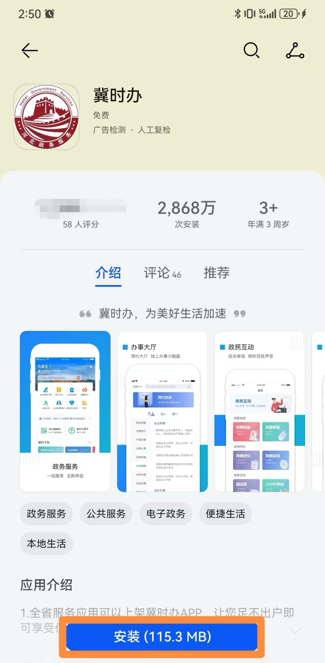 (一)手机应用市场(软件商店)下载并安装“冀时办”APP。