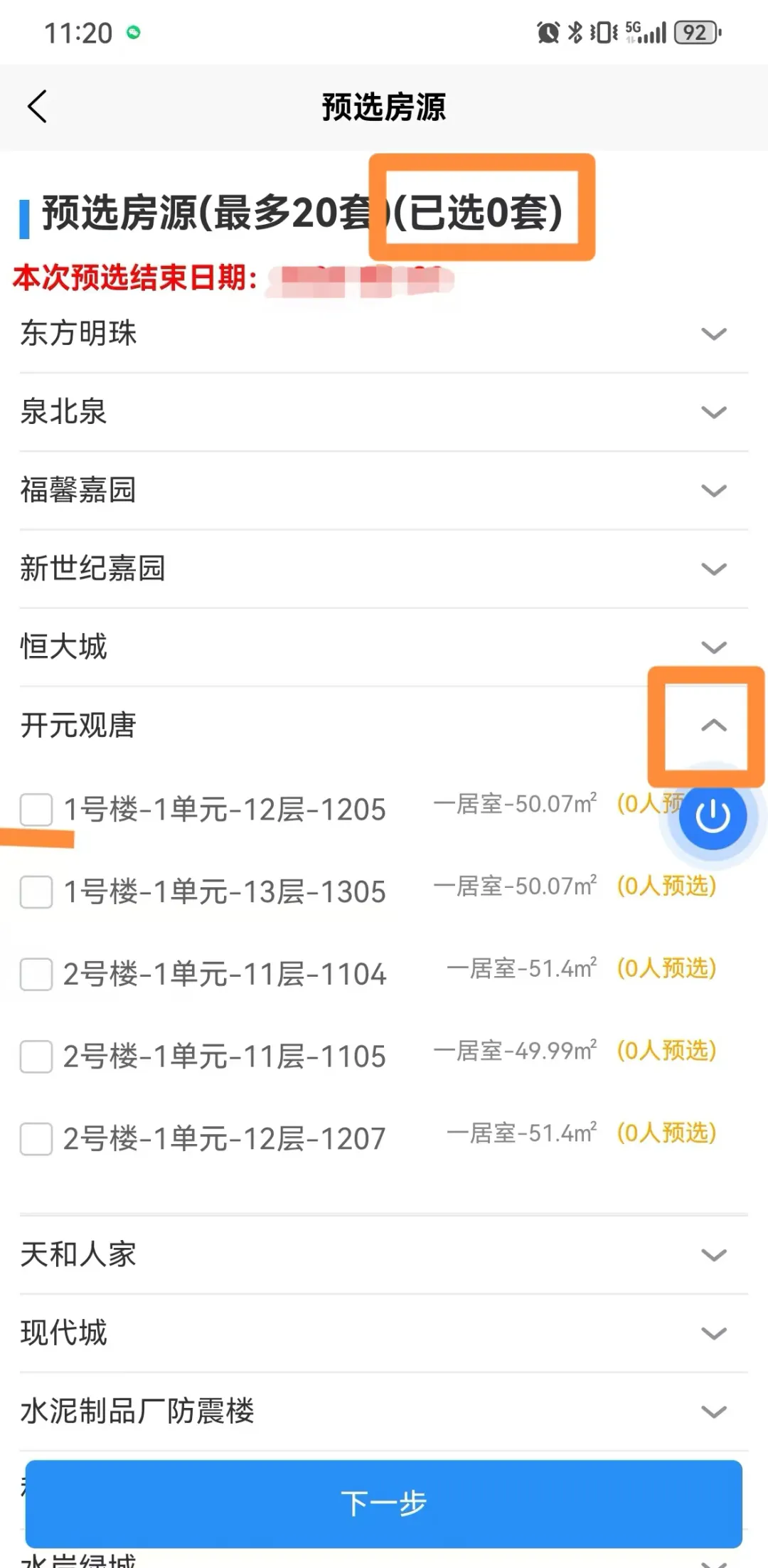 (二)每个轮候家庭可选择3至20套预选房源。请注意参考预选房源右侧显示的已预选人数,合理填报预选房源和志愿顺序,避免选择预选人数较集中的热门房源,影响房源匹配成功率。