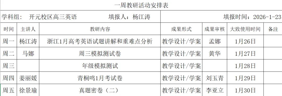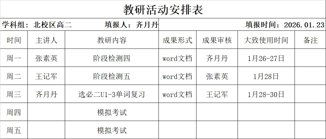 邢台二中英语组周教研计划0126-0130