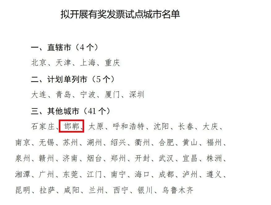 🔥 邯郸家人们注意!全国 50 城有奖发票试点公示第 3 天啦!今天 1.25,距离 1.23-2.2 公示结束还有 9 天,咱邯郸和石家庄入选,河北仅有的 2 个试点,消费开票最高抽 800 元,全城已掀起囤票热,这波官方福利别错过!