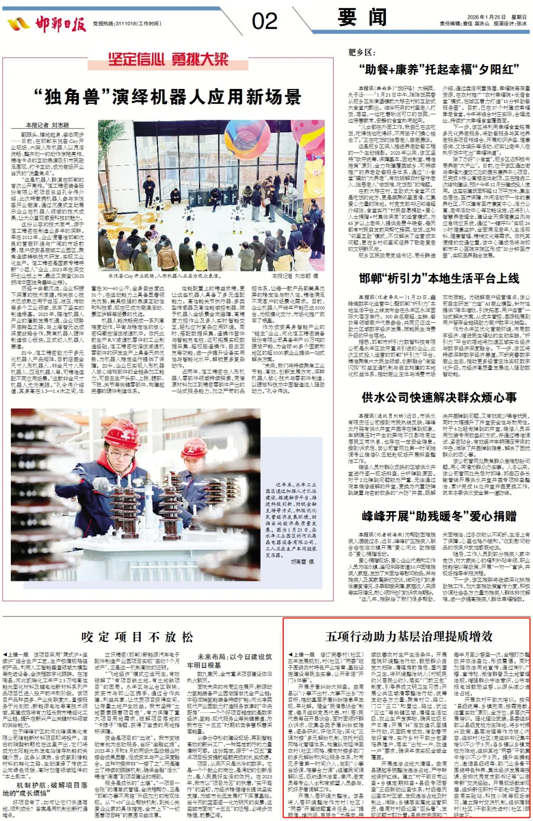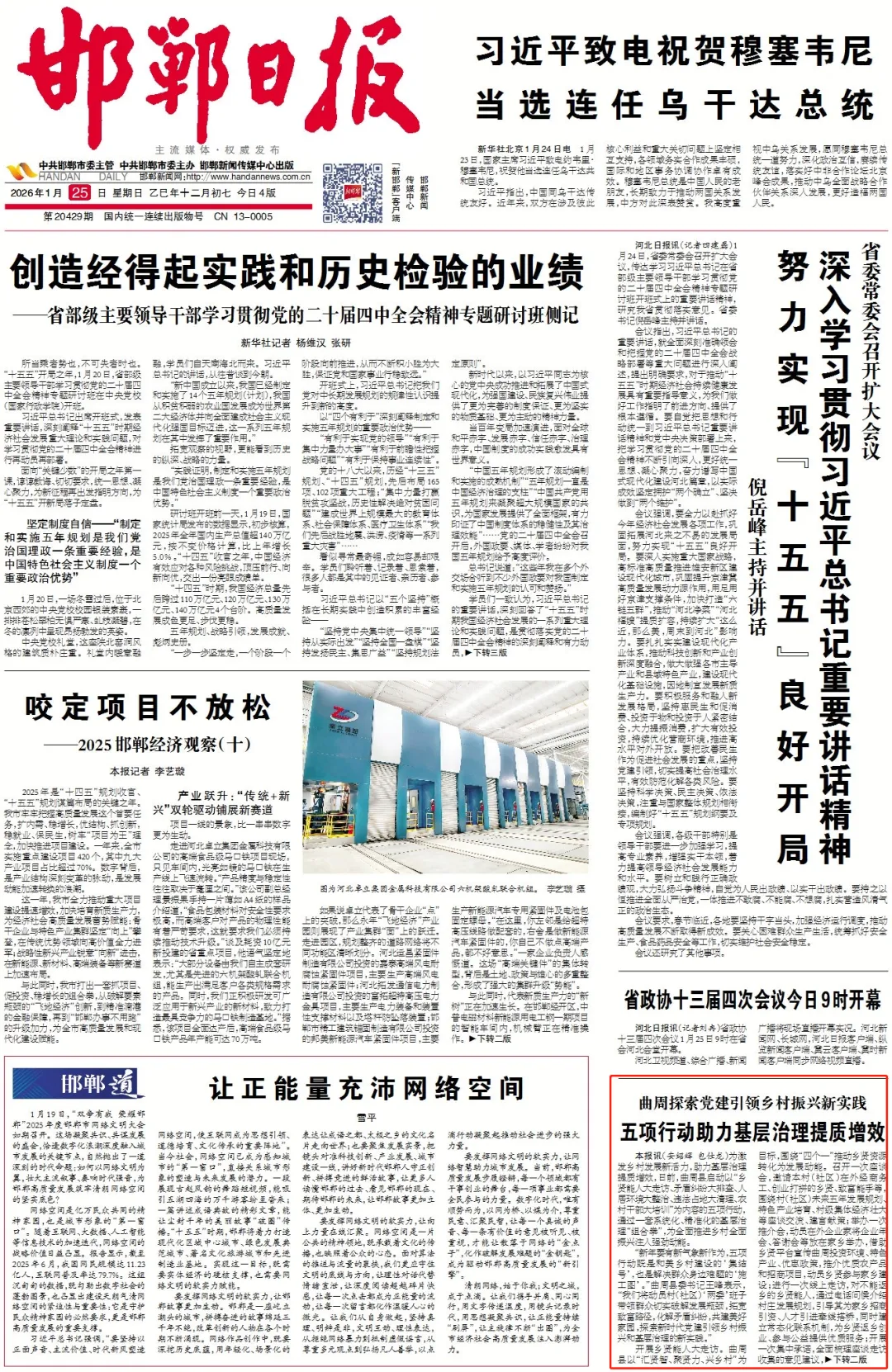 开展乡贤能人大走访。曲周县以“汇贤智、聚贤力、兴乡村”为目标,围绕“四个一”推动乡贤资源转化为发展动能。召开一次座谈会,邀请本村(社区)在外经商务工、创业打拼的乡贤、致富能手等,围绕村(社区)未来五年发展规划、特色产业培育、村级集体经济壮大等座谈交流、建言献策;举办一次推介会,动员在外企业家将企业年会、答谢会等放在家乡举办,借助乡贤平台宣传曲周投资环境、特色产业、优惠政策,推介优质农产品和招商项目,动员乡贤参与家乡建设;进行一次线上走访,对不能返乡的乡贤能人,通过电话问候介绍村庄发展规划,引导其为家乡招商引资、人才引进牵线搭桥,同时建立常态化联系机制,为乡贤返乡创业、参与公益提供优质服务;开展一次集中承诺,全面梳理座谈走访收集的意见建议,修订完善村(社区)五年发展规划,村(社区)“两委”班子围绕农村特色产业培育、基础设施建设等民生实事,公开承诺“开门5件事”。