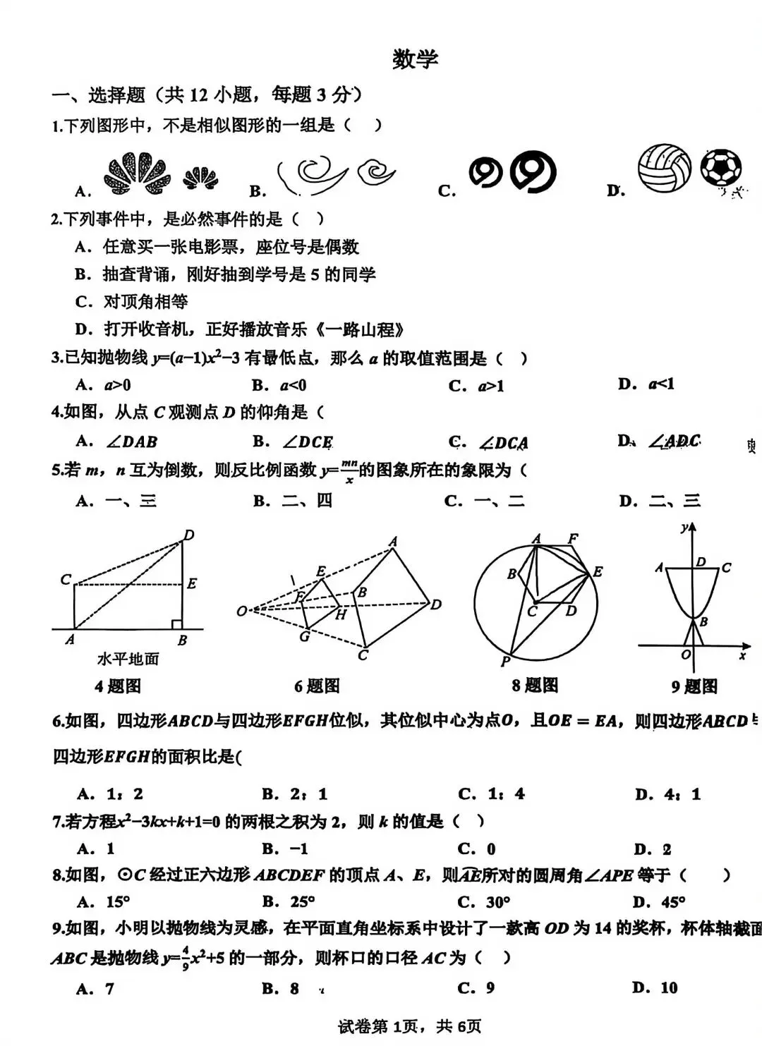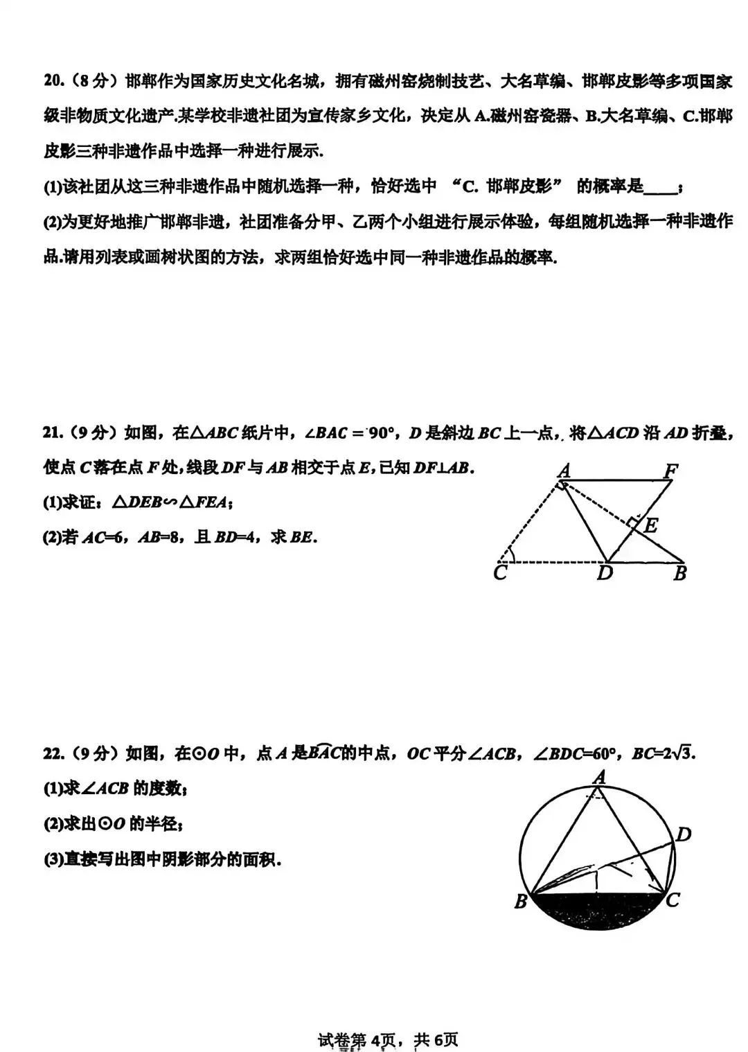 邯郸育华中学初三上数学期末考试卷