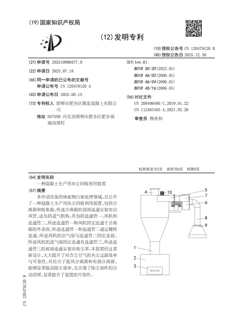邯郸发明巡礼—“一种混凝土生产用灰尘回收利用装置”