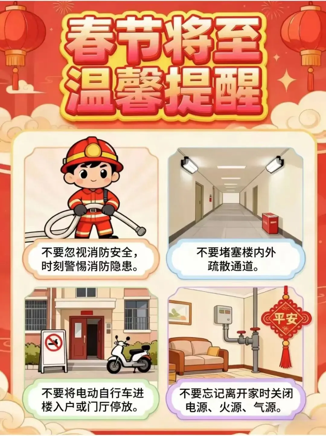 10. 新春将至,把安全放在首位,消防提醒记牢,过个平安幸福年~