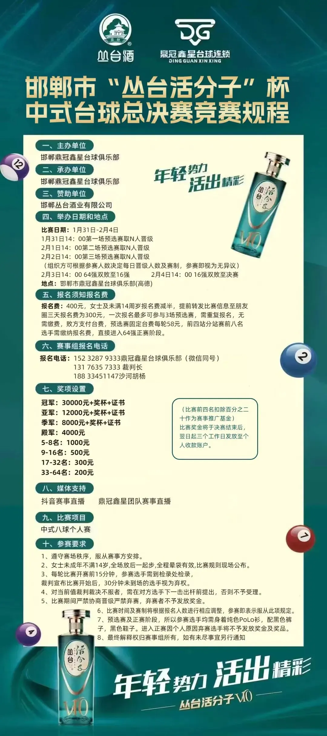 1月31日---2月4日邯郸市鼎冠鑫星台球俱乐部,冠军3万元