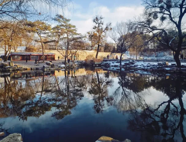 在承德,最舒服的时刻,莫过于在热河泉边找块石头坐下,看水草在清澈的泉水里招摇,手里捧着一杯刚买的热梨汤。看着夕阳一点点把棒槌山染成金色,整个人就这么瘫坐在时光里,像是一块吸饱了阳光的老砖,心里那根紧绷的弦,慢慢松了,软了,踏实了。这种松弛感,不是演出来的,是这座山城给你的底气。