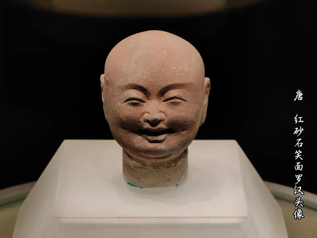 红砂石笑面罗汉头像