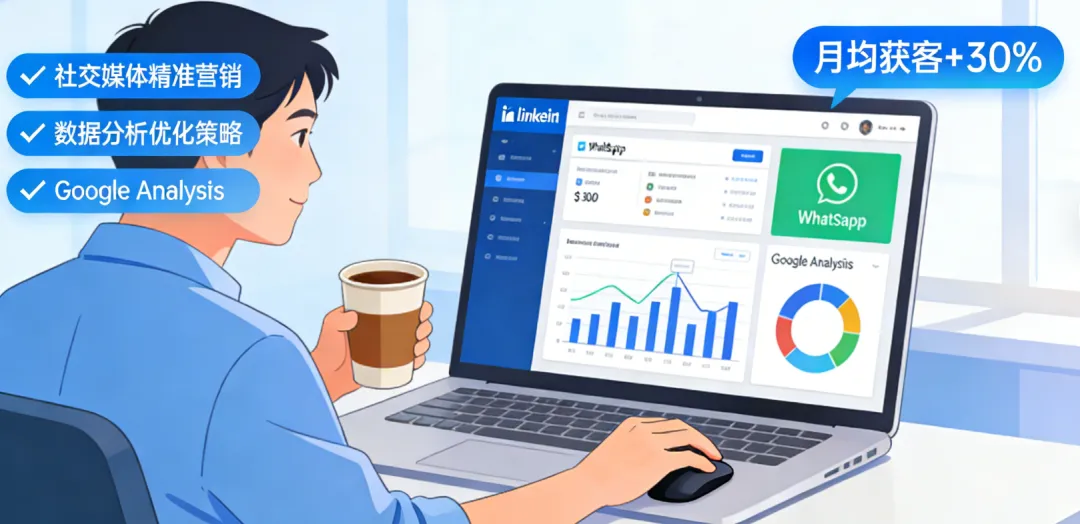 第二步:线上获客——低成本、广覆盖,快速触达全球中小买家 线上是小工厂做外贸的核心渠道,不用投巨资做推广,重点做免费/低付费的精准平台+社媒,把“工厂直供+代工背景”的卖点传出去,适合人力少的情况,核心做3个渠道: