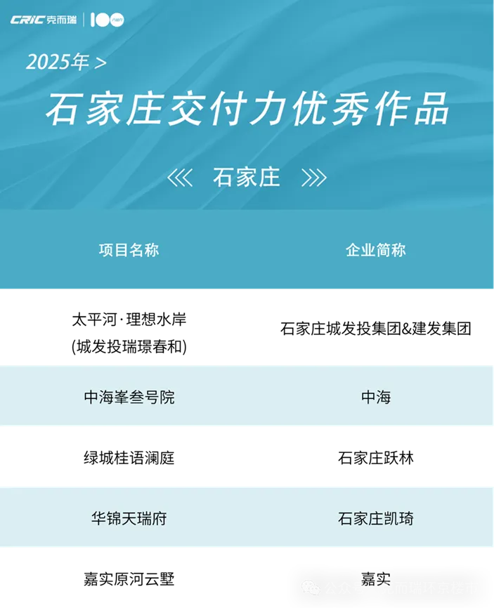 (参评项目为石家庄2025年1月1日-12月31日期间交付的居住类项目)