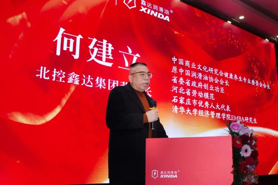 活动伊始,北控鑫达集团董事长何建立先生登台致辞。他深情回顾了鑫达32载从石家庄本土企业成长为全国知名品牌、斩获“中华老字号”“中国驰名商标”等多项荣誉的发展历程,在2025年获得 1 项发明专利、8 项实用新型专利与 6 项外观专利并获 “国家级科技型企业”的荣誉称号。强调“做好油,为中国”的初心从未改变。何董重点分享了鑫达响应“一带一路”倡议、布局非洲与东南亚国际市场的战略突破,让在场伙伴深刻感受到本土品牌的硬核实力与家国情怀。他表示,鑫达的成长离不开每一位合作伙伴的信任与支持,未来将以更优品质、更实举措回报家乡、回馈社会,共同续写合作共赢的新篇章。