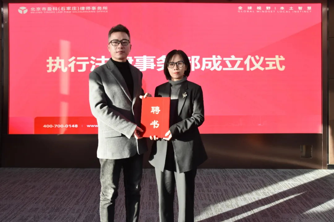 2026年1月20日,盈科石家庄分所执行法律事务部宣告正式成立。盈科石家庄“执行法律事务部”是一支专注于强制执行领域的专业团队。执行案件在实践中与民事、刑事、行政案件交叉,呈现出复杂疑难、专业精细的新趋势。切实解决执行难,将纸上权益转化为实际利益,是当事人的迫切需求,也是维护司法权威的关键环节。面对执行案件特殊性,亟须构建一支高度专注、经验丰富、战斗力强的专业执行团队,盈科石家庄分所“执行法律事务部”应时成立。