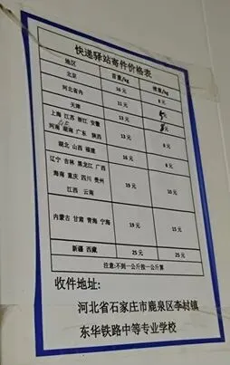 如需要发快递,学生可以直接送到驿站,站内张贴有各地区快递收费标准,明码标价、公开透明。
