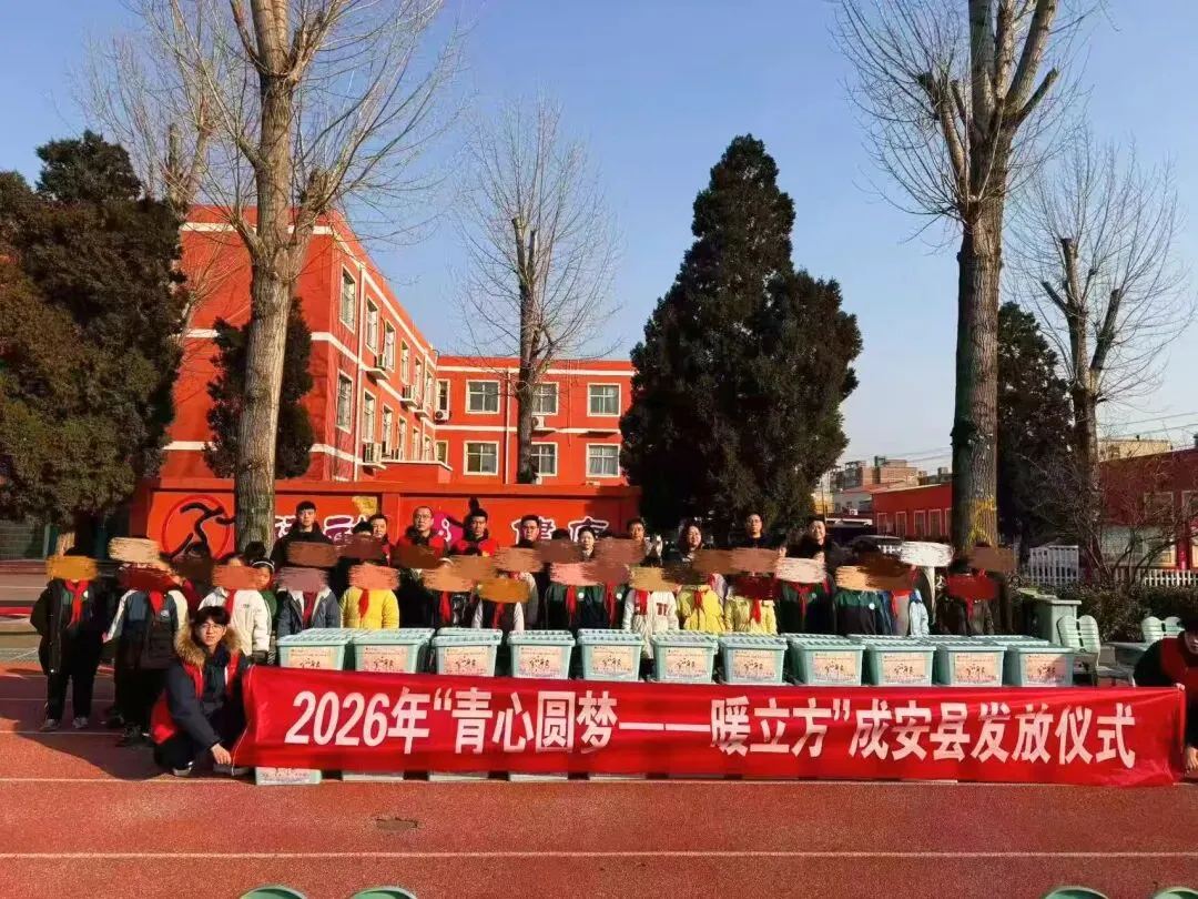 1月21日,由共青团邯郸市委、邯郸市青联、共青团成安县委、成安县教体局组织开展的“青心圆梦——暖立方”发放仪式在商城镇中心小学顺利举行,在寒冬中为孩子们送上温暖。志愿者们将“暖立方”物资包送到孩子们手中,亲手为他们换上崭新冲锋衣,勉励他们不畏困难、自强不息、奋勇向前。