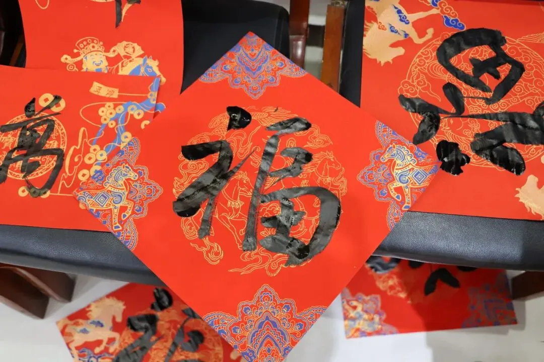 恰逢腊八佳节,村里早已年味渐浓。受邀的书法家和检察干警铺纸研墨,挥毫书写,一副副蕴含吉祥寓意、承载美好愿景的春联和一个个饱满有力的“福”字跃然纸上。“法治清风滋沃土,检察暖意润民心”“乡村振兴千家乐,公正司法万户安”……这些既体现法治精神又饱含新春喜庆的联句,格外受到村民青睐。大家或是兴致勃勃地围在案前,精心挑选心仪的联语,或是请书法家和检察干警现场创作个性化祝福,现场欢声笑语,其乐融融。捧着墨香浓郁、满载祝福的春联,村民们笑容满面,连连称赞:“你看这字多有精气神!”