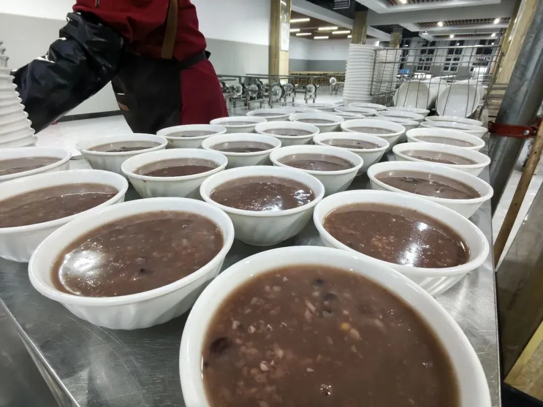 今天是农历腊月初八,腊八一到,春节也就不远了。我校为了让学生们感受到传统节日的温暖和关怀,膳食部特意在腊八这一天为学生们熬制了腊八粥。浓香甜糯的腊八粥,每一碗都承载了学校的味道。