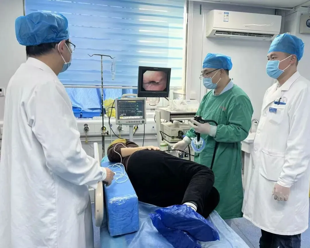 “患者的曲张静脉范围广、压力高,传统治疗创伤大、恢复慢,内镜下微创治疗是当前最安全有效的方案。”内镜室团队在详细评估病情后,决定采用内镜下胃底静脉曲张组织胶注射术联合食管曲张静脉硬化治疗。手术中,医护团队凭借精湛操作,通过纤细柔软的胃镜精准定位曲张静脉,在高清内镜监视下,向胃底曲张静脉内精准注射组织胶及食管曲张静脉内注射硬化剂。实现快速断流止血,整个过程创伤小、出血少,最大限度保护了患者消化道黏膜功能。