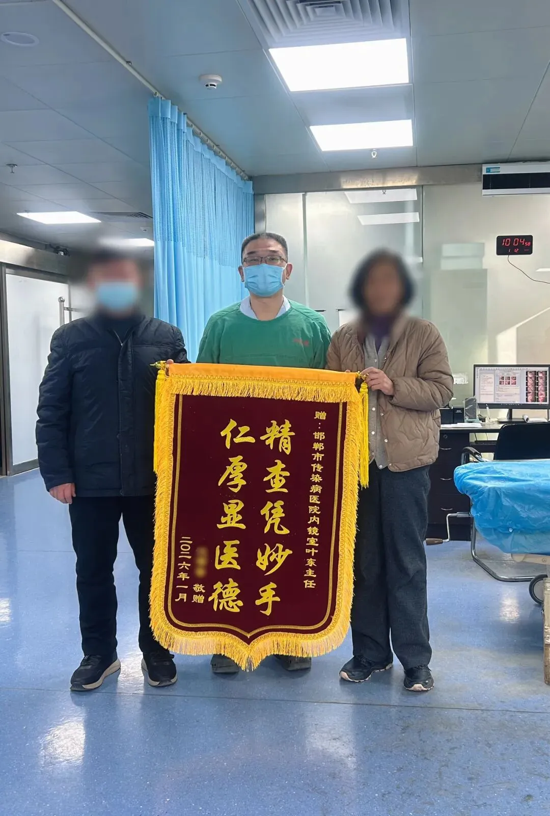 一面锦旗,承载着生命相托的信赖;一句致谢,凝聚着医患同心的温暖。近日,邯郸市第六医院(邯郸市传染病医院)内镜室收到了一份特殊的“礼物”——曾被食管胃底静脉曲张困扰的患者汪女士,在康复出院后专程送来锦旗,红绸上“精查凭妙手,仁厚显医德”的烫金大字,承载着患者汪女士及家人满满的感激之情,更是对我院内镜室医疗技术与服务品质的高度认可。