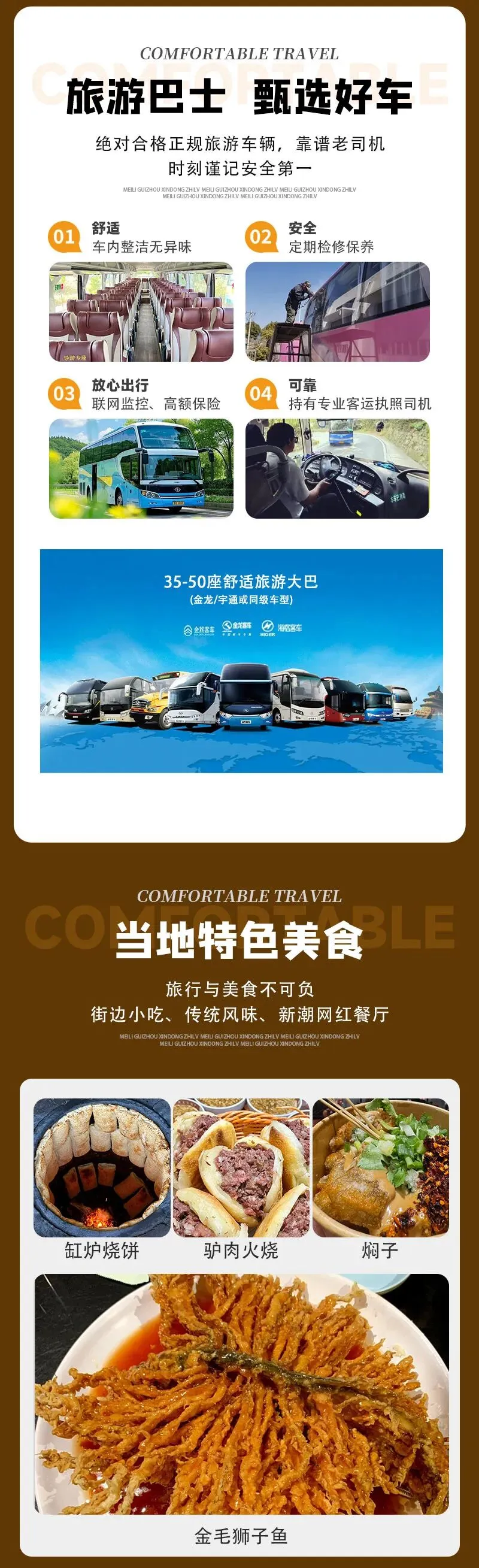 1)交通:往返空调旅游巴士包车费用及司机食宿等费用(不含景区小交通);