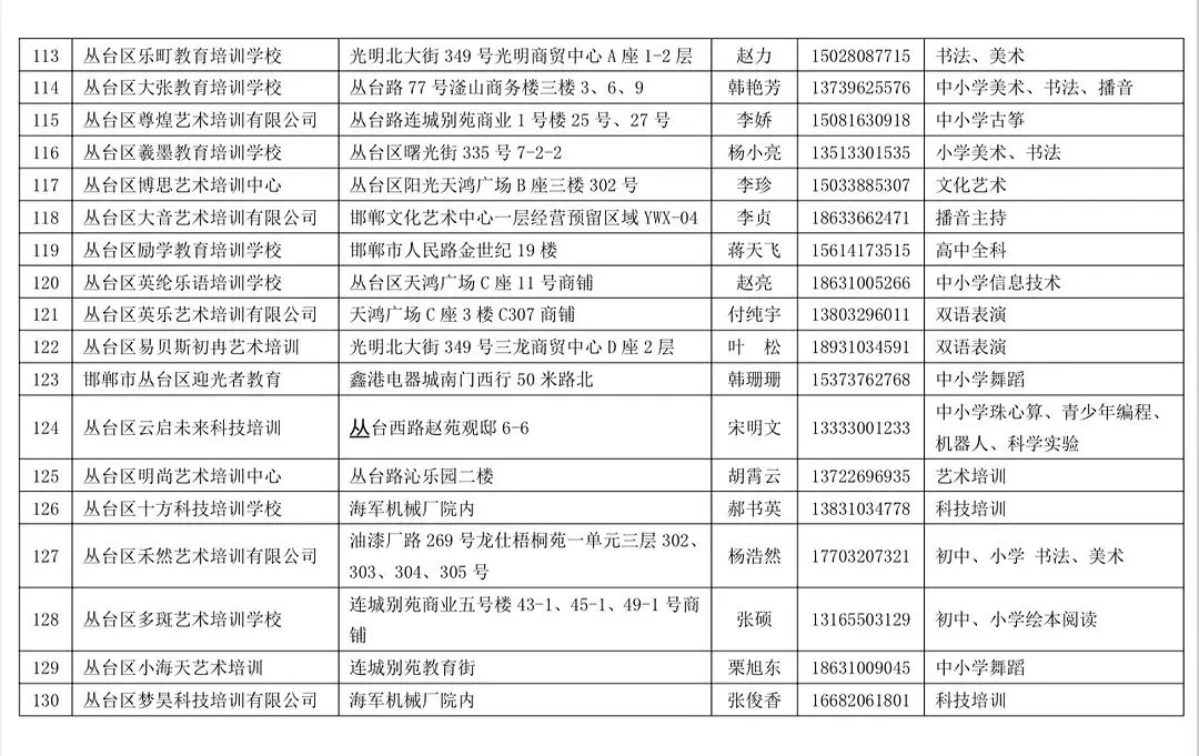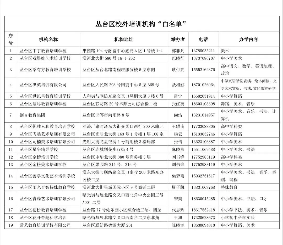 1. 优先从丛台区教体局公布的非学科类培训机构白名单中筛选,坚决避开无证无照、证照不全的“黑机构”;