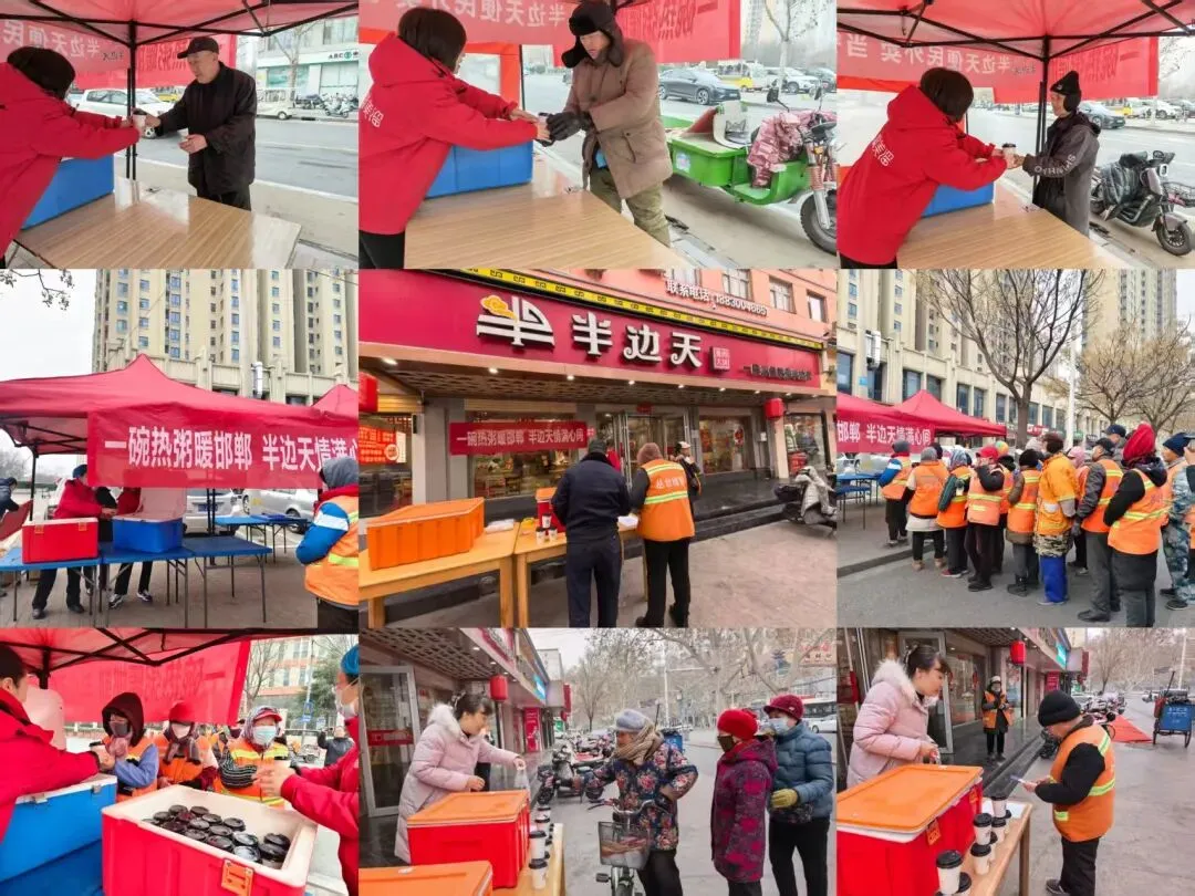 为贯彻落实团省委“送温暖”集中行动季工作部署,弘扬中华优秀传统文化,在农历腊八节来临之际,团邯郸市委携手邯雪食品、张小生鲜汁肉包、福美谣半边天熏肉大饼餐厅、包味小镇四家爱心企业,并联动全市各级团组织与当地爱心商家共同发起“一碗粥 温暖一座城”公益送粥活动。全市共有95家门店参与了此次腊八节公益活动,在节日当天为环卫工人、外卖骑手等户外工作者送上了热气腾腾的腊八粥,累计送出5000余碗,以此传递一份份真挚的关怀与温暖。腊八佳节至,粥香暖人心。包味小镇50家门店心系城市一线劳动者,在腊八节当日为230名环卫工人、640名外卖员共870位坚守岗位的奋斗者送上暖心腊八粥,总价值4350元。一碗碗热粥,承载着包味小镇的温情与敬意,愿在寒冬里,为每一位为生活奔波的人添一份暖意、送一份安康。