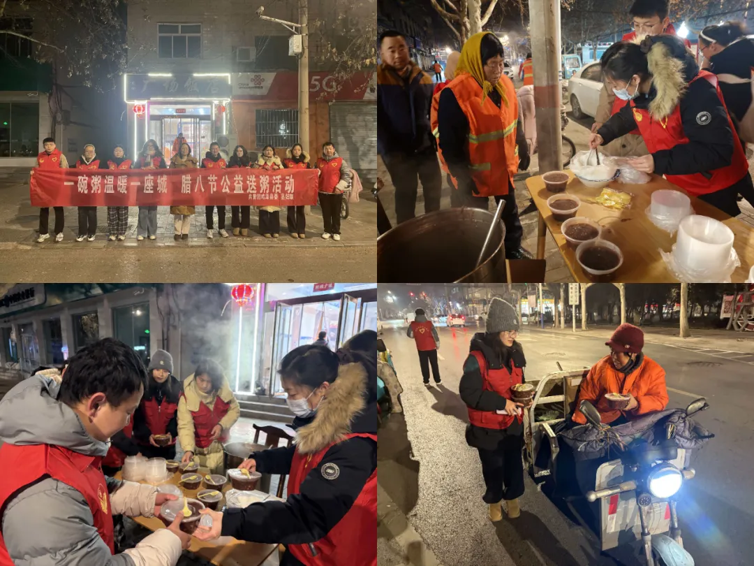 腊八佳节至,粥香暖人心。张小生鲜汁肉包情系城市一线劳动者,今日为辛勤的环卫工人、奔忙的快递员、一线交警及外卖小哥等共计200多人,送上暖心的腊八粥与招牌鲜汁肉包,物资总价值2800多元。一碗热粥,一只鲜包,承载着真挚的关怀与敬意,愿这份朴实而温暖的美味,能为在寒风中坚守的您,增添一份暖意与力量。岁末天寒,温情渐浓。邯雪食品心系冬日里的城市守护者,今日为环卫工人、快递员等户外劳动者送上精心熬制的腊八粥与实用暖冬物资。一份暖粥,一份牵挂,承载着邯雪食品深切的敬意与祝福,愿这份温暖陪伴左右,守护您冬日里的安康与顺遂。团峰峰矿区委携手聚源羊汤馆开展“一碗粥 温暖一座城”公益活动,在腊八节当日组织青年志愿者为辛苦的环卫工人送上腊八粥。热粥驱寒,心意传情,致敬平凡岗位上的不凡坚守,用志愿力量传递峰峰温度,腊八安康,暖意常伴。