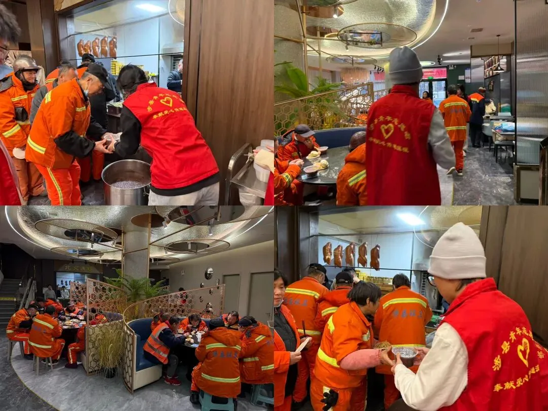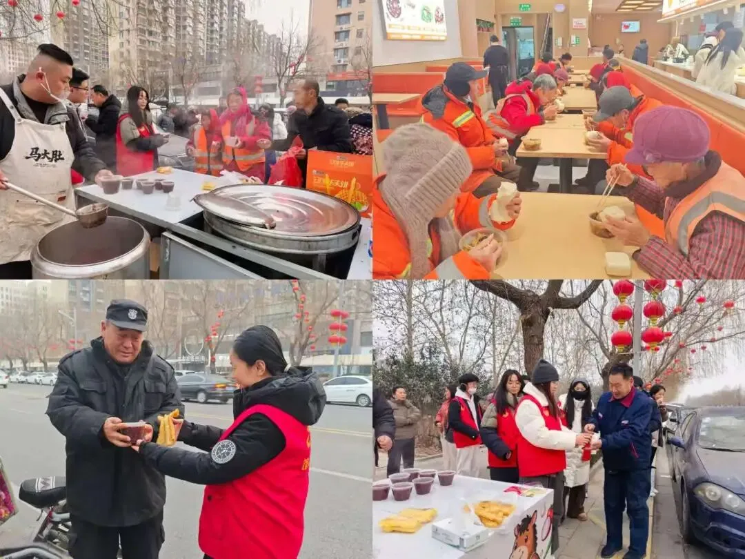 腊八送暖,情满人间。福美谣半边天熏肉大饼餐饮心系冬日里的城市守护者,今日为400余名环卫工人、交警与快递小哥送上热腾腾的腊八粥及暖心物资,总价值1600元。一份粥,一份情,致敬每一位在寒风中坚守岗位、为城市有序运转默默付出的一线劳动者。愿这份热气传递诚挚谢意,温暖同行,岁岁安康。