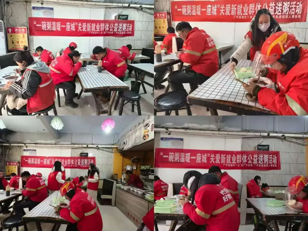 团鸡泽县委与县妇联共同开展“一碗粥 温暖一座城”公益送粥活动。天不亮,工作人员就集合完毕,迅速完成分工,早早开始分装工作。将熬煮好的腊八粥送到环卫工人、出租车司机等一线劳动者手中,并叮嘱他们注意保暖。本次活动累计送出暖心粥品 100 余份,让一线工作者感受到浓浓温情,传递了共青团的温暖与责任。