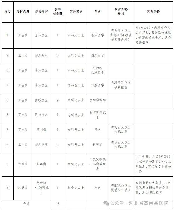 为加强医院人才队伍建设,根据医院发展需要,现面向社会公开招聘16名工作人员。现将有关事项公告如下: