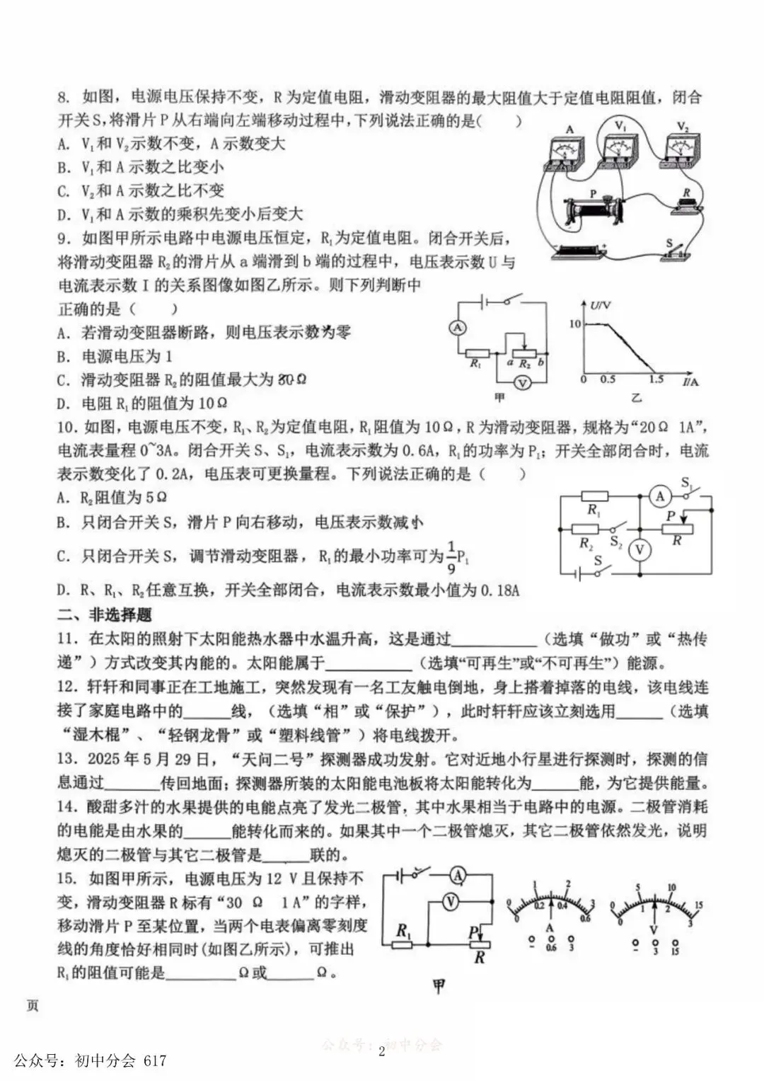 >2026石家庄28中九(上)期末物理试卷