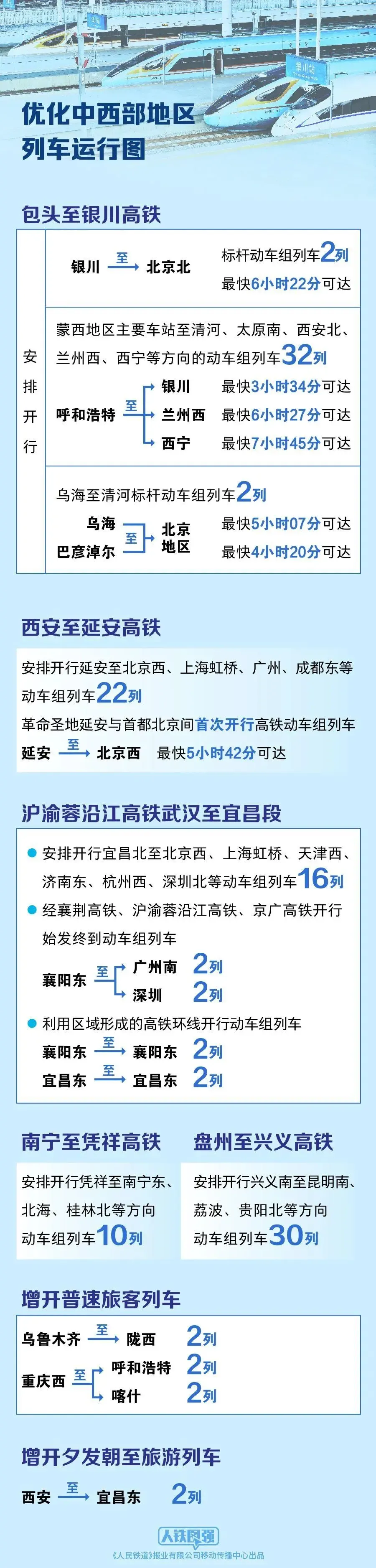 调图后,全国铁路安排图定旅客列车12130列,开行货物列车23748列,铁路客货运输能力和效率进一步提升,运输产品供给持续优化,将更好地服务经济社会高质量发展。列车运行图调整后,还有哪些具体的变化?一图看懂↓