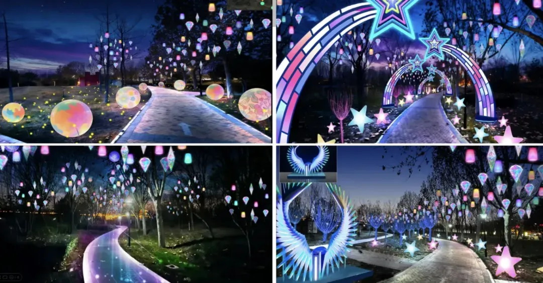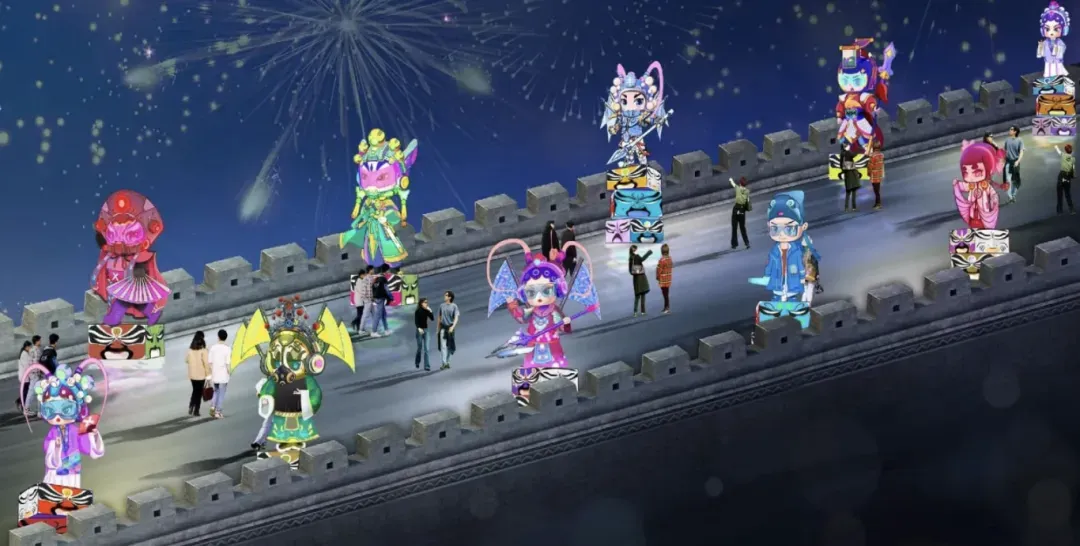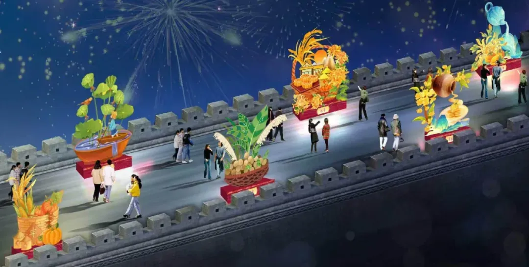 其中,南门城墙以“迎春游园会”为题,融合了马年图腾、二十四节气、红楼梦文化、国潮美学等元素,通过三大主题篇章,为游客呈现长约千米的沉浸式灯盏长廊。