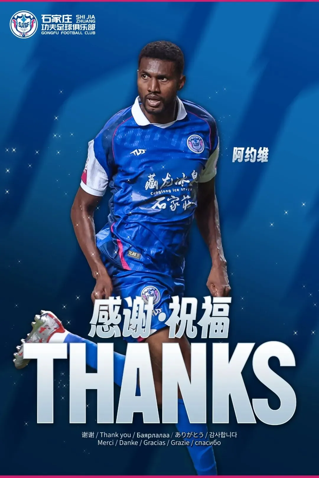 三位球员在效力石家庄功夫期间,始终秉持专业严谨的职业态度,带着顽强拼搏的赛场作风,用一次次稳定且精彩的表现,赢得了俱乐部全体同仁的认可,更收获了每一位石家庄功夫球迷的喜爱与敬意。在此,石家庄功夫足球俱乐部向何塞·阿约维、丹克莱尔、冈萨雷斯三位球员,致以最诚挚的感谢和最美好的祝福。
