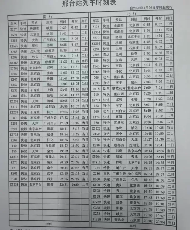 20. G6719(周末线),20:56—20:58变为20:57—21:00。
