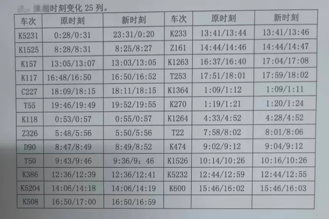 12. G1015(原G333),12:03—12:07变为12:03—12:05。