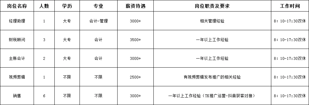 招聘岗位: