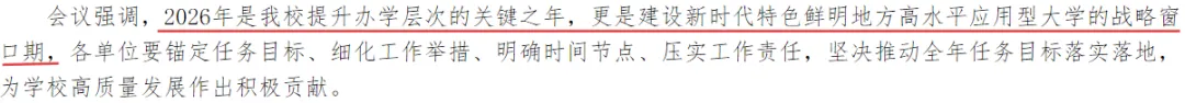 2026年1月9日,邯郸学院召开了“2026年重点工作谋划会”,会议强调,2026年是学校提升办学层次的关键之年,更是建设新时代特色鲜明地方高水平应用型大学的窗口期,意味着学校在为更名“大学”做准备了。