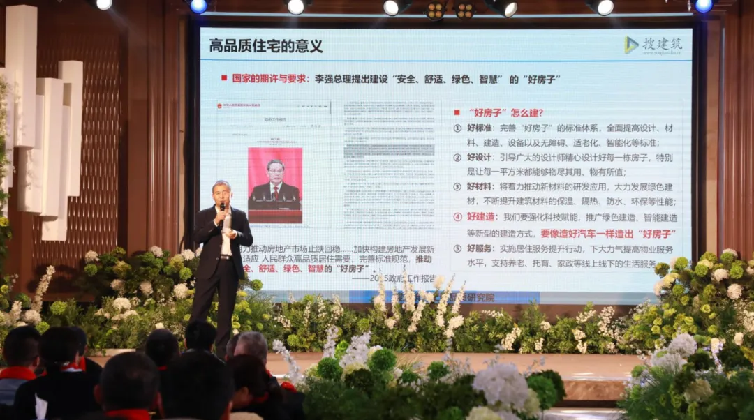 好的产品,要有好的工程质量方能出圈。创新才能节约成本,提高效能。搜建筑工程品质研究院院长邢玉喜从工程品质方面分享了《低成本高品质精益建造管理实践》。