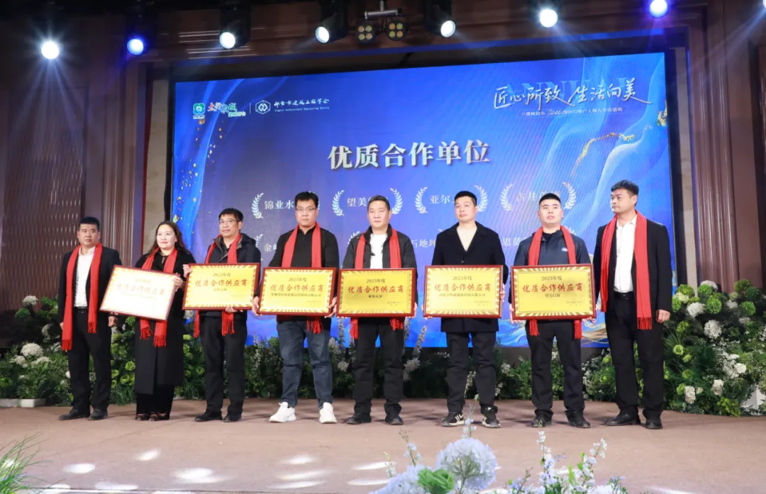 本次年度盛典,还为2025年度邢台市建筑工程学会先进个人进行了表彰,同时,为战略合作供应商、优质合作供应商企业颁发牌匾。2025年度邢台市建筑工程学会先进个人:赵素仿、李正强、李西敏、腰会宾、王青、豆志凯、霍秀军、柴冬东、董永亮、姚文智战略合作供应商