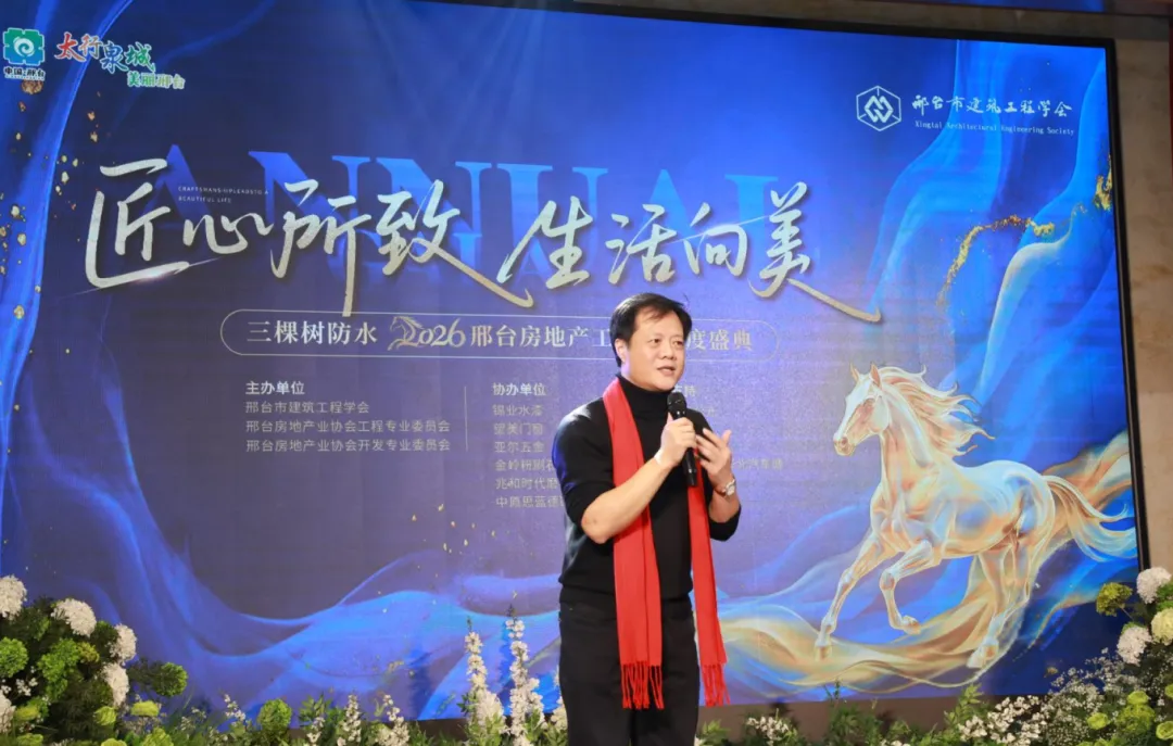 2026年1月24日,由邢台市建筑工程学会、邢台房地产业协会工程专业委员会、开发专业委员会联合主办,美居邢台承办,三棵树防水冠名,锦业水漆、望美门窗、亚尔五金、金岭粉刷石膏、兆和时代磨石地坪、中原思蓝德密封胶等单位协办,元宏国际公元、古井贡酒、乐道中心、元品装饰友情支持的“匠心所致·生活向美”2026邢台房地产工程人年度盛典在马凯贵宾楼开元店爱斐堡厅隆重举行。