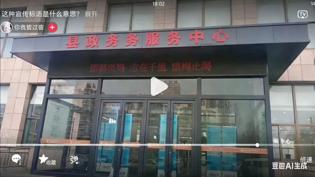 看到一条标语,是在某县的政务服务中心。上面是,这么近那么美,周末到河北。下面是,邯郸斑鸠,志在千里,望梅止渴。感觉怪怪的。